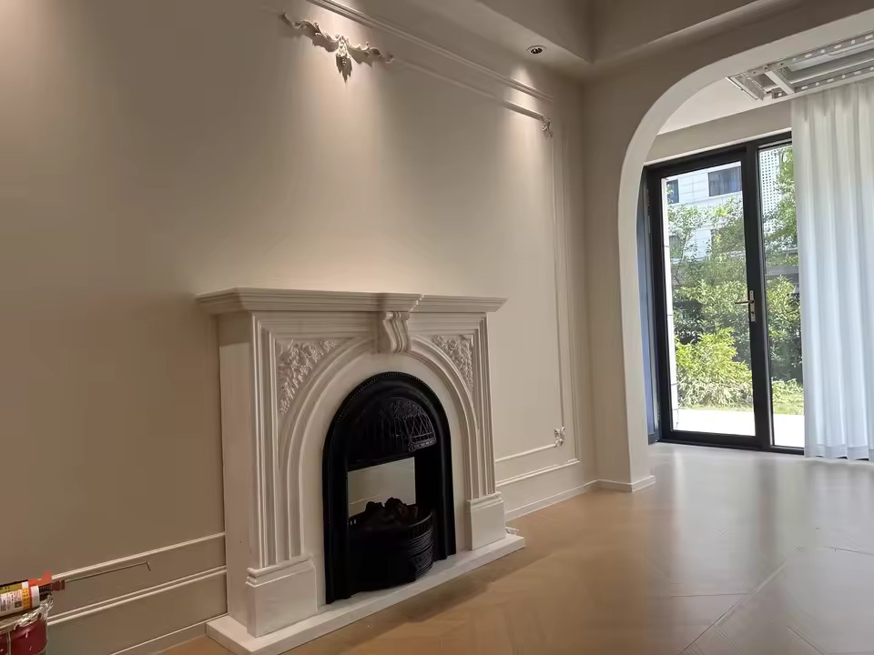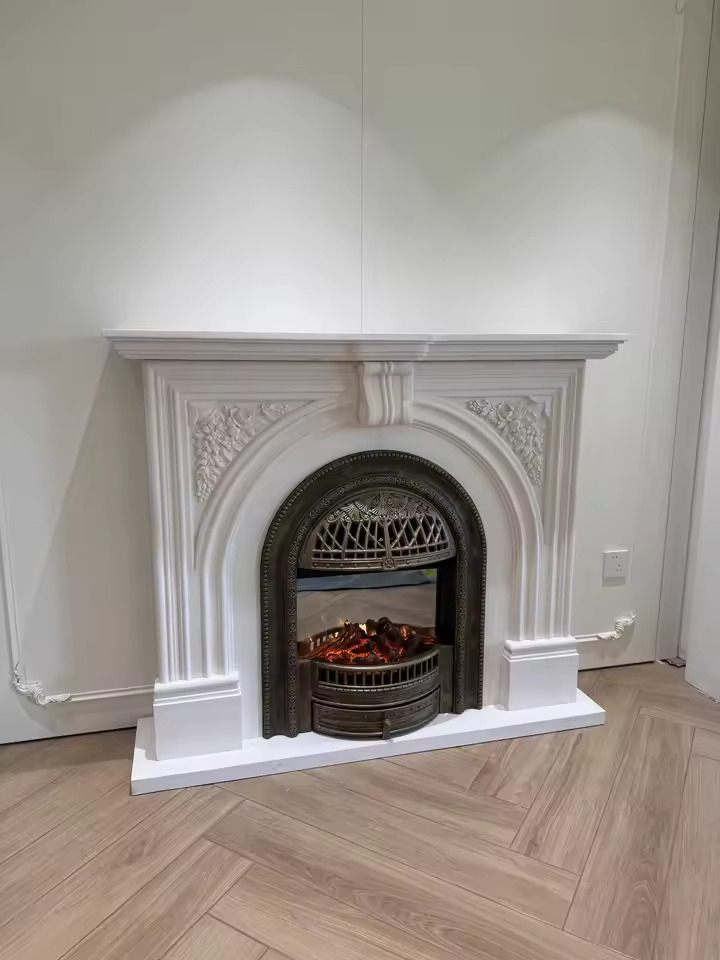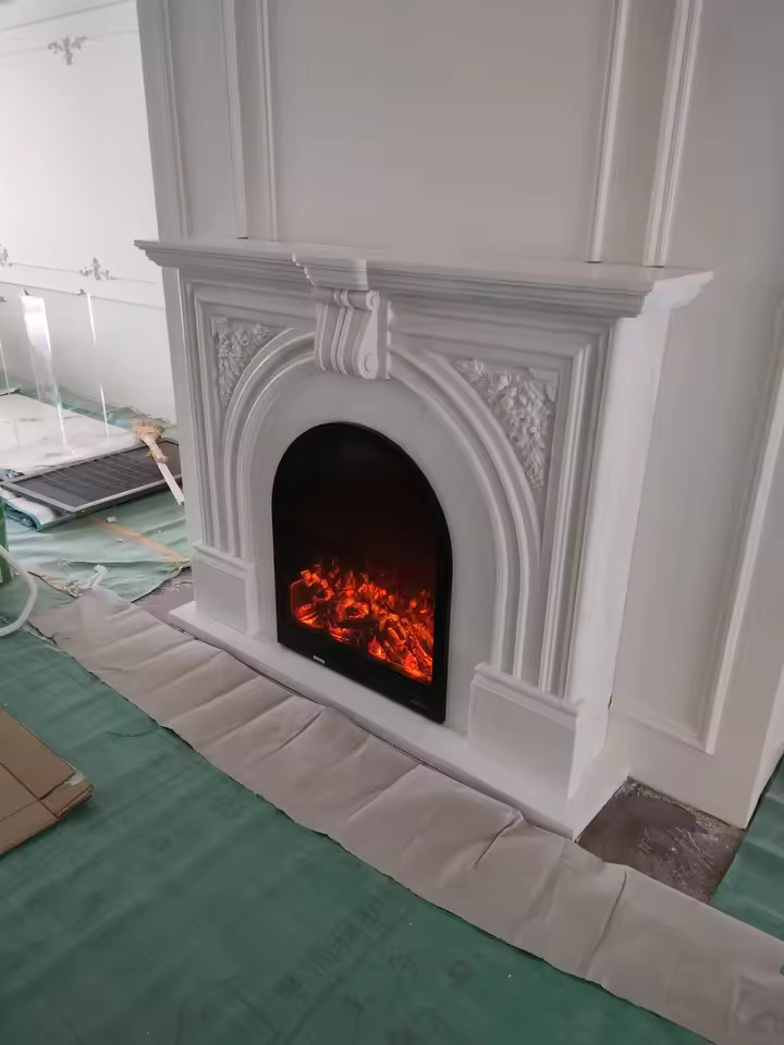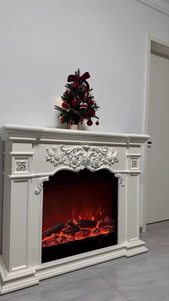 This electric fireplace cabinet features a beautifully hand-carved solid wood frame, showcasing exceptional craftsmanship. Every detail is carefully refined, providing a sturdy and elegant structure that enhances the natural beauty of solid wood.