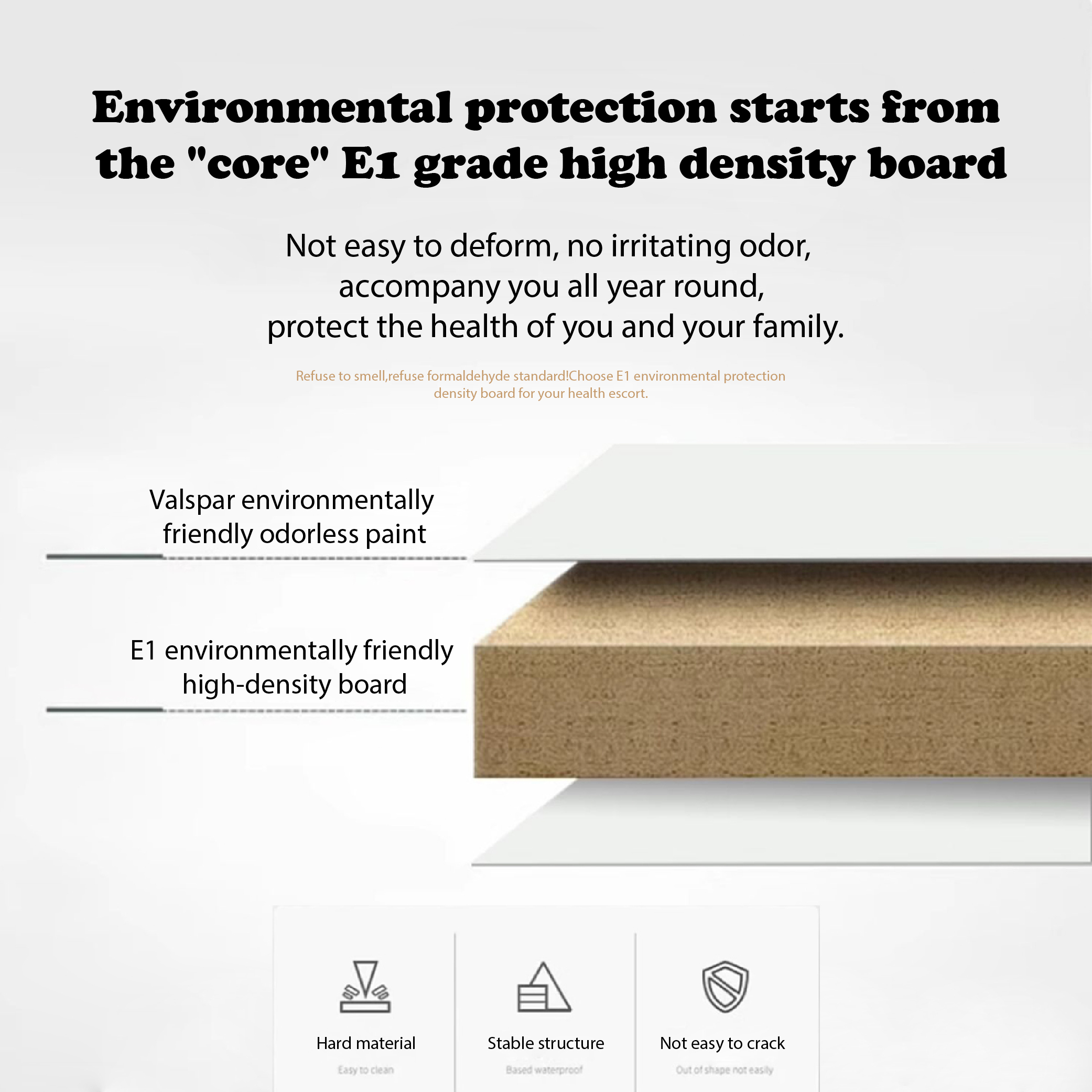 E1-grade high-density board, dense structure, environmentally friendly.