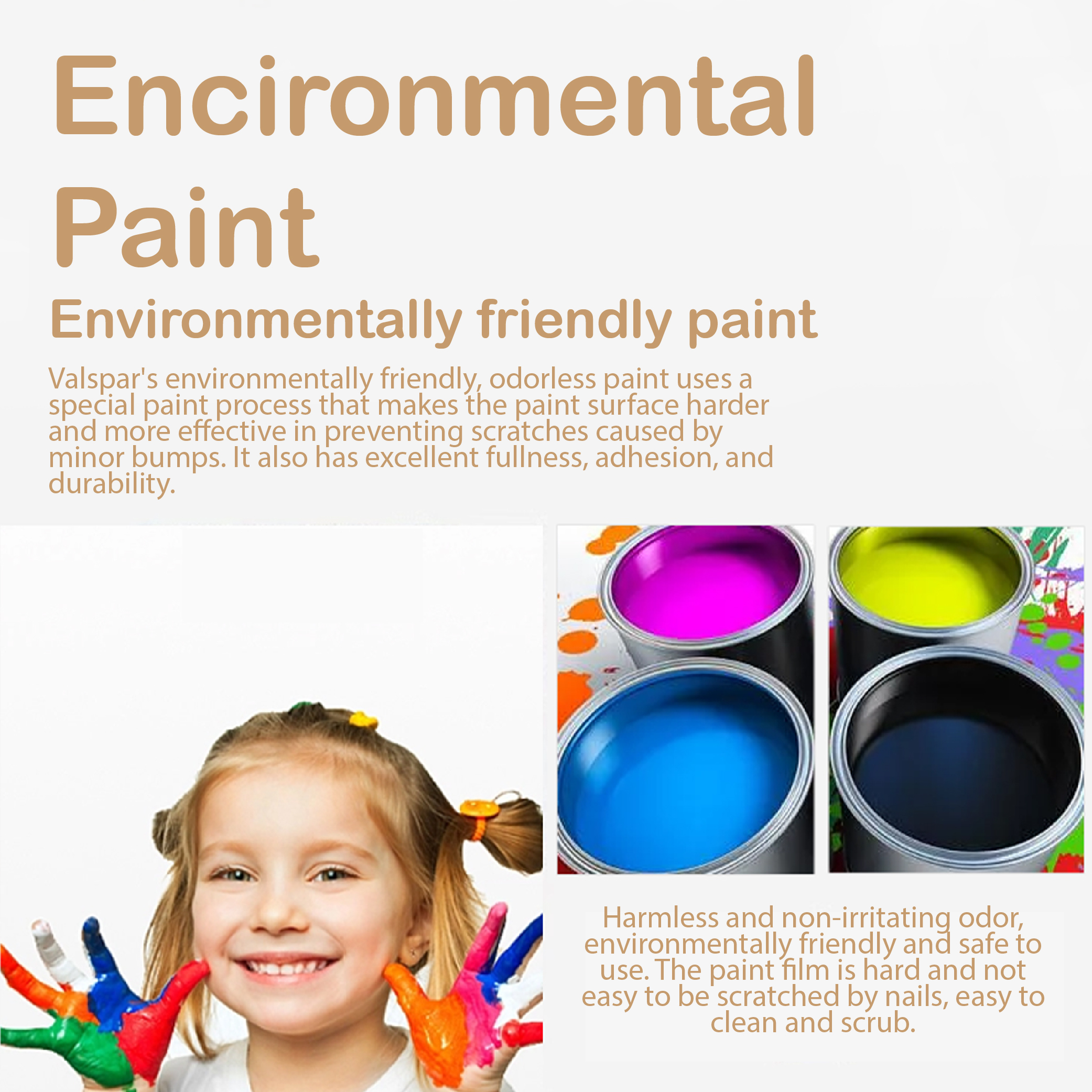 Premium paint, eco-friendly and non-toxic, with a smooth finish.