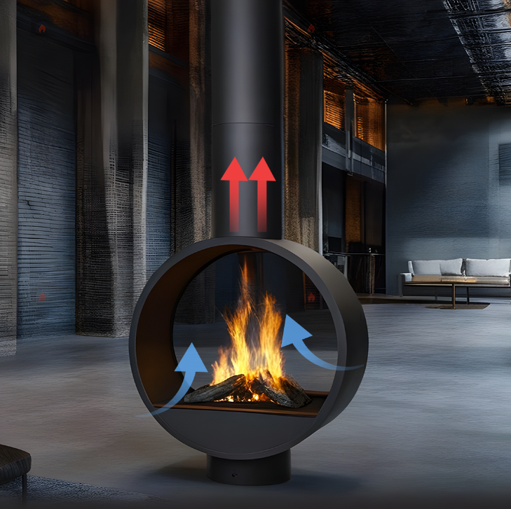 Featuring advanced rapid smoke extraction, this fireplace uses the siphon effect to efficiently remove smoke from indoors, ensuring a cleaner and fresher environment. As fresh, cool air is continually drawn in, it fuels the fire, allowing for a brighter and more robust flame. This innovative airflow design enhances both the ambiance and performance, providing a superior and enjoyable fireplace experience.