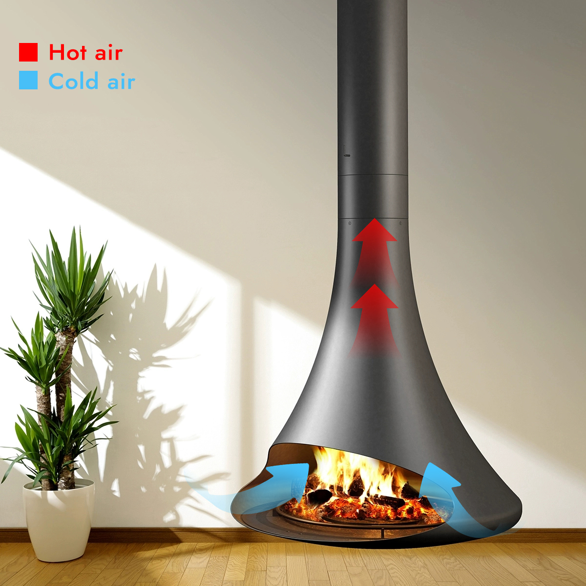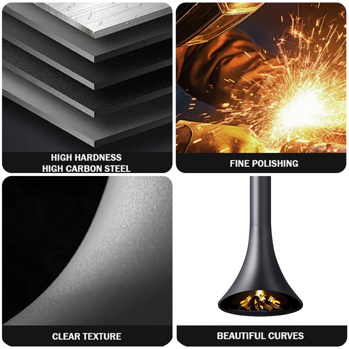 Luxury Hanging Trumpet Curved Fireplace Shine 4