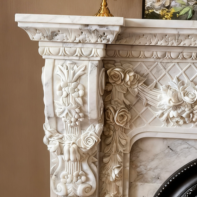 Stone Carved French Marble Electric Fireplace Aurora7